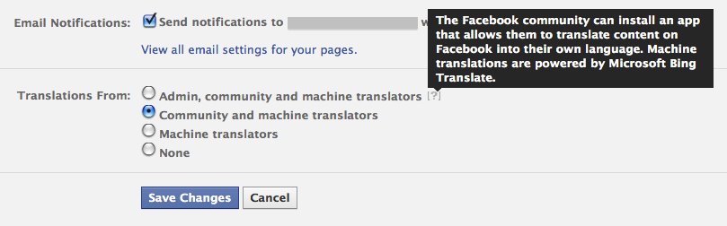 Facebook has joined with Microsoft’s Bing to provide translation services on the popular social media platform. If a user wants to read someone’s page in a foreign country, a link will appear on the right side of the text with the translated text. Microsoft announced a new Microsoft Translator API last month.