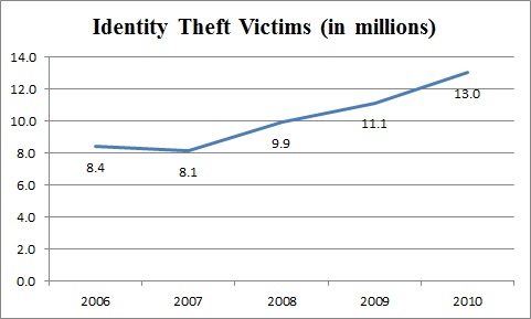 Over the past 2 years, an estimated total of 11.7 million Americans were victims of some sort of identity theft. Over a 5 year period, this number is increasing at an average rate of 1.1 million Americans, representing 10.1 million victims per year. (Statistics according to the Federal Trade Commission).
