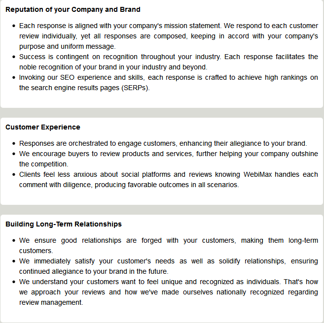 The leader in online Reputation Management has launched a new website, aimed at explaining the reviews process that is so integral to online marketing. WebiMax Reviews include the processes used that make the company the #1 rated Reputation Management firm by TopSeos.com. There are a lot of individuals that do their due diligence before doing business with a company, therefore, we understand many are looking for WebiMax reviews. It takes more than just sitting back and waiting for customers to post positive remarks about your company and brand. Proactive measures need to be taken to add a sort of barrier around your company. Would you build a fort without a defensive wall?