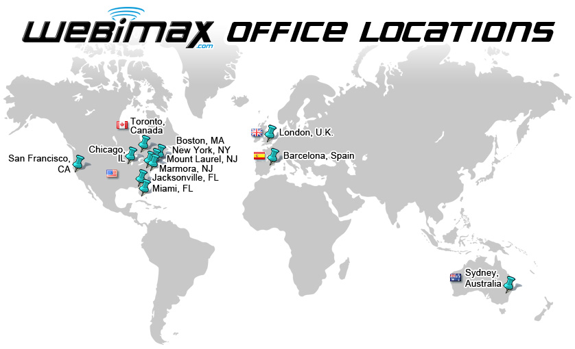 WebiMax’s U.S. headquarters is located in Mount Laurel, NJ which houses the majority of its U.S. based personnel. “Our corporate headquarters will also be increasing in size as we expand our core operations center” stated Wisnefski. “Our Jacksonville, FL location will also be focused on adding additional development staff and the other satellite offices will likely house under 10 employees in each location”.